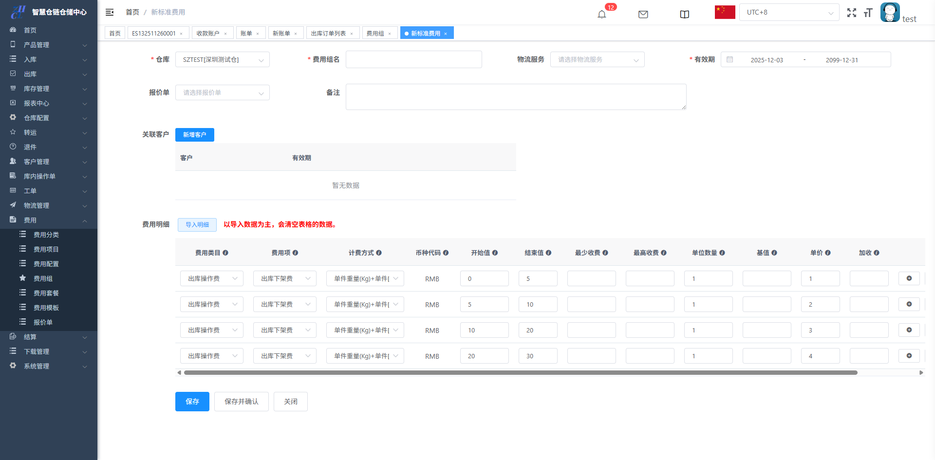 入口:费用-费用组-新标准费用