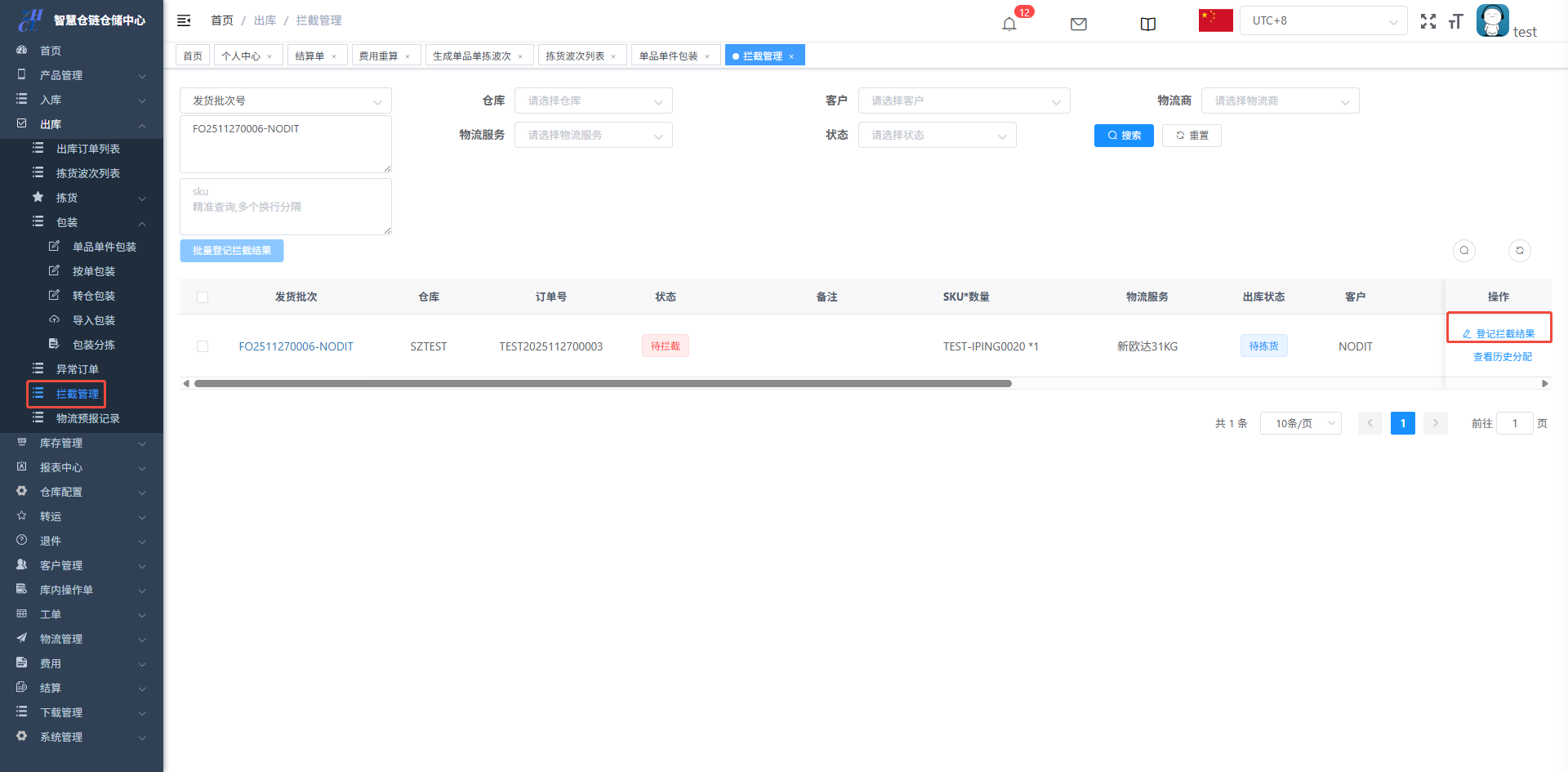 订单拦截都来源于OMS,WMS只负责执行操作