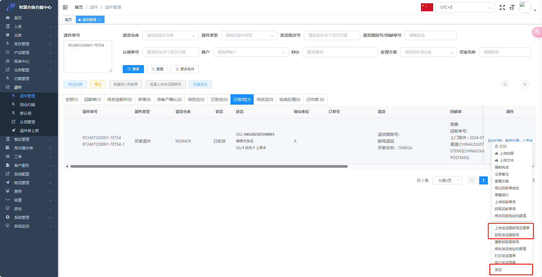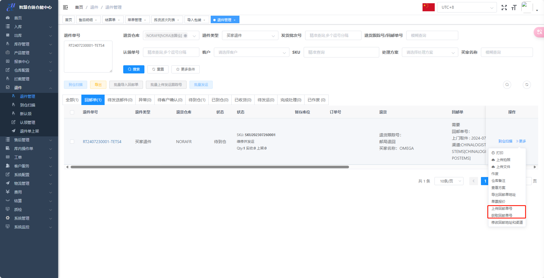 退件到仓,首先需要在退件列表中打印退件标签,最终的处理的方式一般有两种: