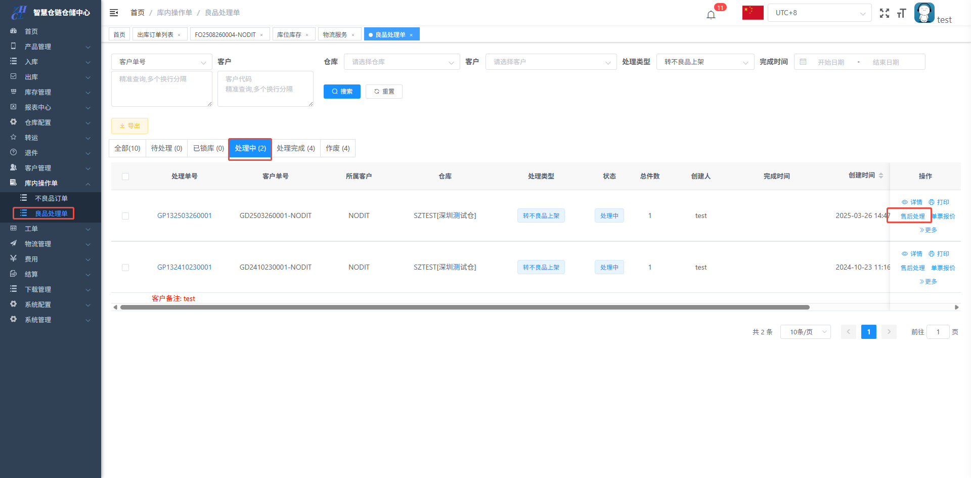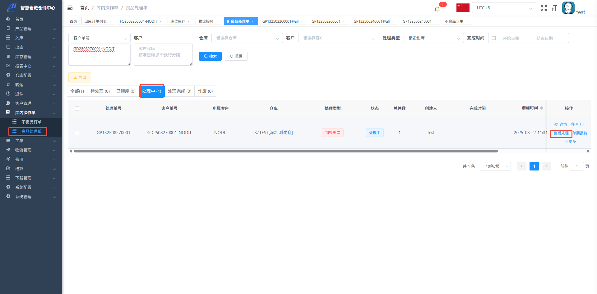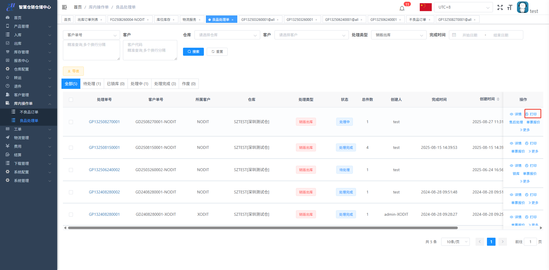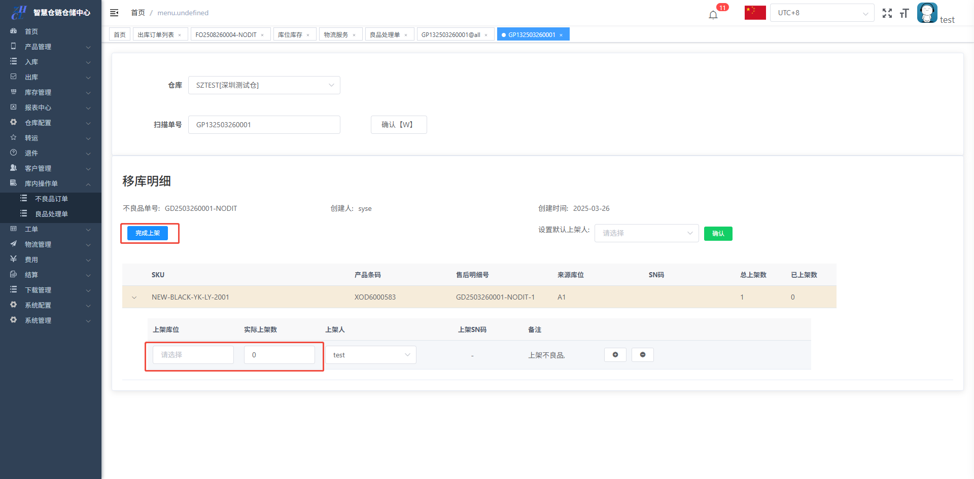 目录 搜索 展开 仓库基础数据初始化维护打印机配置&打印控件连接异常PDA输入异常和扫描回车异常仓库基础数据创建仓库(超级管理员)创建客户(客服主管)创建库位(仓库主管)创建包材(仓库主管)物流渠道(仓库主管)(已安排迭代,待更新UI优化中)官方物流自定义物流(卡派&自提)客户自上传面单黑白名单配置其他配置入库(头程入库)整单收货及整单上架按SKU收货及按SKU上架按箱收货及按箱上架边卸边上架入库异常处理出库(一件代发&转仓)物流面单获取方式一件代发(标准订单FO)生成单品单拣波次和单品单件包装生成多品合拣波次和包装分拣转仓生成按单拣货波次和按单包装生成按单拣货波次和转仓包装出库异常处理(缺货&破损)订单拦截(客户拦截订单)库存管理(批次锁定,SKU转换,库存调整等)批次库存库位库存SKU库存库存调整(SKU转换)退件(C端退件)买家退件认领退件物流退件库内(良品不良品转换,销毁等)不良品订单良品处理单转运(越库,快进快出)转运列表物流管理(价格配置)物流分区重量段模板物流价格特殊规则(UI待更新)费用( 海外仓标准计费项目)入库费用配置出库费用配置仓租费用配置退件费用配置费用套餐配置费用模板(模板费用)结算(财务)结算单(导出&重算)手工应收(其他费用入账)客户入账收款账户账单工单(客服团队)配置列表创建工单 暂无相关搜索结果! 阅读次数:44 本文档使用 NewoudaDoc 发布 良品处理单 6.2仓库处理良品转不良品路径:库内操作单-良品处理订单6.21转不良品上架(移库)6.22检查(移库)6.23销毁出库(出库操作)说明:转不良品上架(移库操作),检查(移库操作),销毁出库(出库操作)统一打印入口:6.2仓库处理良品转不良品路径:库内操作单-良品处理订单6.21转不良品上架(移库)售后处理填写处理信息线下处理完成后,直接上架到不良品库位6.22检查(移库)处理方式同6.21转不良品上架(移库)6.23销毁出库(出库操作)售后处理填写处理信息,完成单据作者:关冲 创建时间:2025-08-20 10:11最后编辑:关冲 更新时间:2025-12-18 15:34
