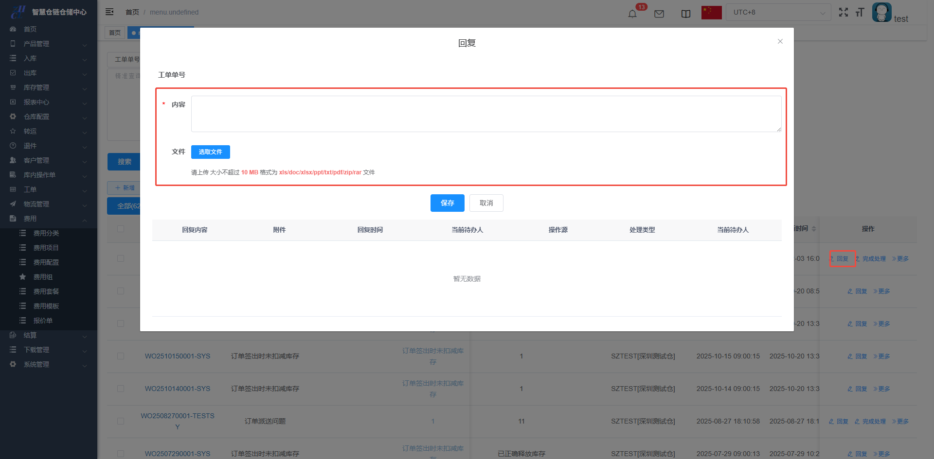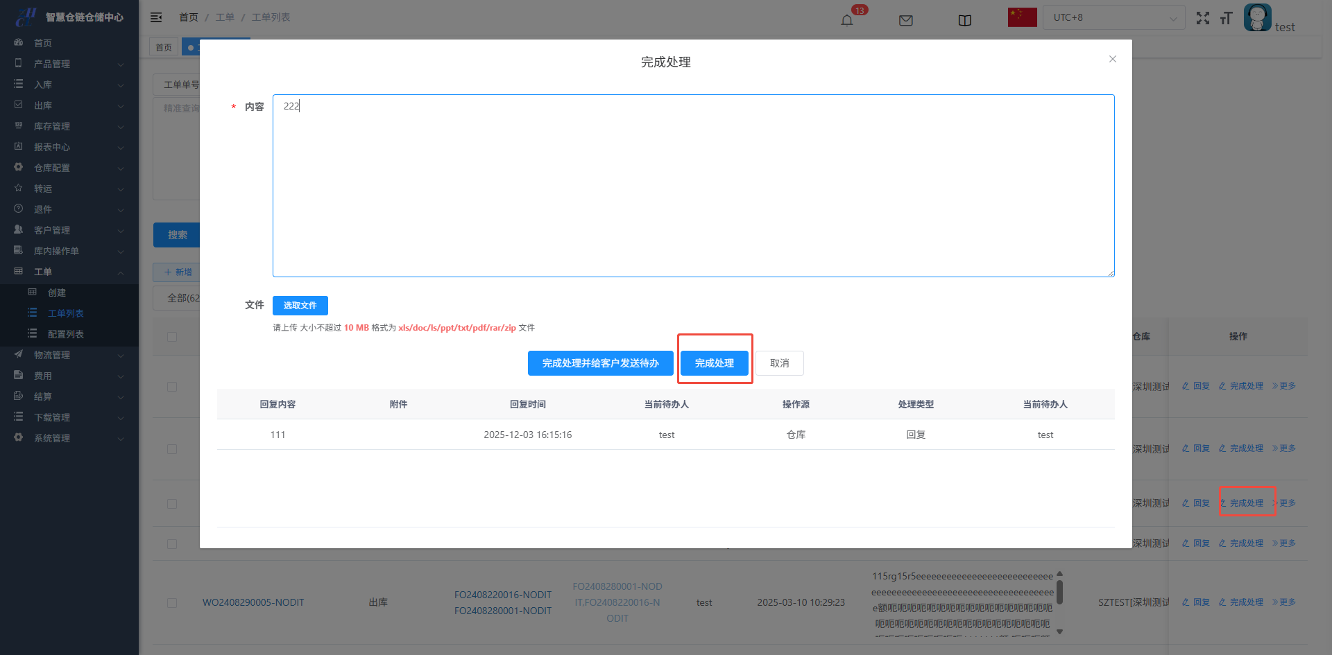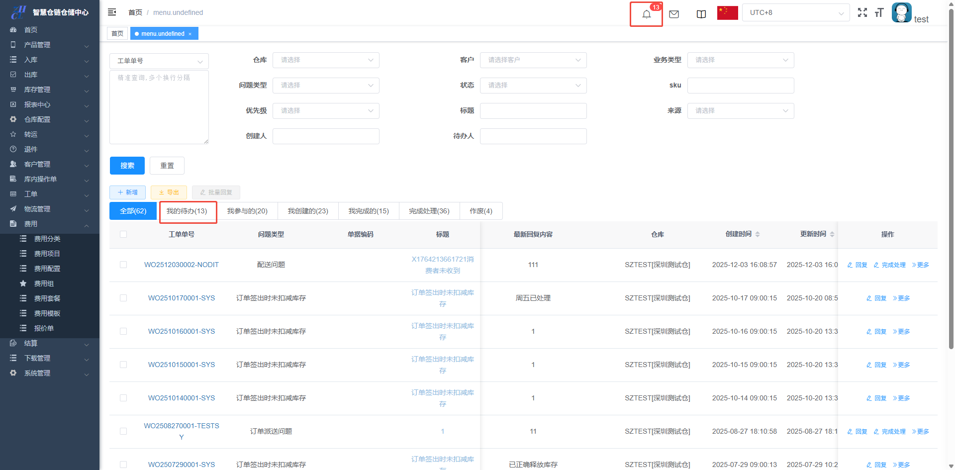 目录 搜索 展开 仓库基础数据初始化维护打印机配置&打印控件连接异常PDA输入异常和扫描回车异常仓库基础数据创建仓库(超级管理员)创建客户(客服主管)创建库位(仓库主管)创建包材(仓库主管)物流渠道(仓库主管)(已安排迭代,待更新UI优化中)官方物流自定义物流(卡派&自提)客户自上传面单黑白名单配置其他配置入库(头程入库)整单收货及整单上架按SKU收货及按SKU上架按箱收货及按箱上架边卸边上架入库异常处理出库(一件代发&转仓)物流面单获取方式一件代发(标准订单FO)生成单品单拣波次和单品单件包装生成多品合拣波次和包装分拣转仓生成按单拣货波次和按单包装生成按单拣货波次和转仓包装出库异常处理(缺货&破损)订单拦截(客户拦截订单)库存管理(批次锁定,SKU转换,库存调整等)批次库存库位库存SKU库存库存调整(SKU转换)退件(C端退件)买家退件认领退件物流退件库内(良品不良品转换,销毁等)不良品订单良品处理单转运(越库,快进快出)转运列表物流管理(价格配置)物流分区重量段模板物流价格特殊规则(UI待更新)费用( 海外仓标准计费项目)入库费用配置出库费用配置仓租费用配置退件费用配置费用套餐配置费用模板(模板费用)结算(财务)结算单(导出&重算)手工应收(其他费用入账)客户入账收款账户账单工单(客服团队)配置列表创建工单 暂无相关搜索结果! 阅读次数:19 本文档使用 NewoudaDoc 发布 创建工单 工单的问题类型配置:工单创建:工单-创建/工单-工单列表-创建工单处理:工单-回复工单转移待办:工单-转移待办工单完成:工单-完成处理工单的问题类型配置:工单创建:工单-创建/工单-工单列表-创建创建成功的工单,对应的待办人的待办事宜会更新工单处理:工单-回复工单转移待办:工单-转移待办工单移交给其他人处理工单完成:工单-完成处理作者:关冲 创建时间:2025-12-03 15:56最后编辑:关冲 更新时间:2025-12-18 15:34