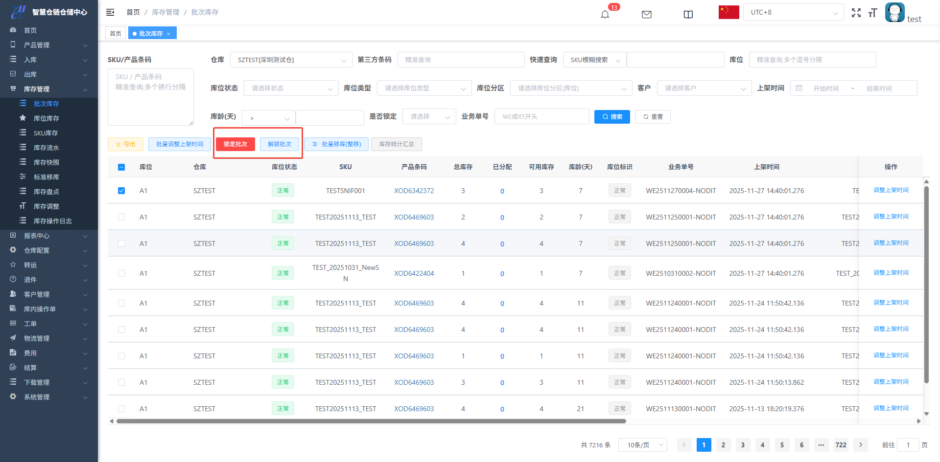 路径:库存管理-批次库存-锁定批次/解锁批次