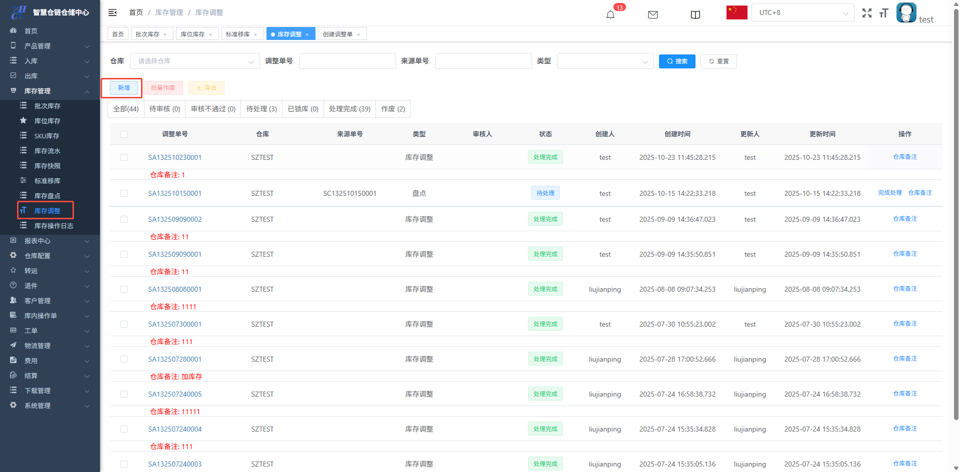目录 搜索 展开 仓库基础数据初始化维护打印机配置&打印控件连接异常PDA输入异常和扫描回车异常仓库基础数据创建仓库(超级管理员)创建客户(客服主管)创建库位(仓库主管)创建包材(仓库主管)物流渠道(仓库主管)(已安排迭代,待更新UI优化中)官方物流自定义物流(卡派&自提)客户自上传面单黑白名单配置其他配置入库(头程入库)整单收货及整单上架按SKU收货及按SKU上架按箱收货及按箱上架边卸边上架入库异常处理出库(一件代发&转仓)物流面单获取方式一件代发(标准订单FO)生成单品单拣波次和单品单件包装生成多品合拣波次和包装分拣转仓生成按单拣货波次和按单包装生成按单拣货波次和转仓包装出库异常处理(缺货&破损)订单拦截(客户拦截订单)库存管理(批次锁定,SKU转换,库存调整等)批次库存库位库存SKU库存库存调整(SKU转换)退件(C端退件)买家退件认领退件物流退件库内(良品不良品转换,销毁等)不良品订单良品处理单转运(越库,快进快出)转运列表物流管理(价格配置)物流分区重量段模板物流价格特殊规则(UI待更新)费用( 海外仓标准计费项目)入库费用配置出库费用配置仓租费用配置退件费用配置费用套餐配置费用模板(模板费用)结算(财务)结算单(导出&重算)手工应收(其他费用入账)客户入账收款账户账单工单(客服团队)配置列表创建工单 暂无相关搜索结果! 阅读次数:43 本文档使用 NewoudaDoc 发布 库存调整(SKU转换) 5.4库存调整5.41库存调整5.4库存调整5.41库存调整路径:库存管理-库存调整-新增可以实现库存调整和SKU转换,适用于库内操作加工,拆箱,装箱等SKU的操作录入新的SKU和数量,即可完成SKU转换,提交并审核作者:关冲 创建时间:2025-12-04 14:07最后编辑:关冲 更新时间:2025-12-18 15:34