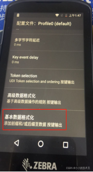3.找到“按键输出”这个选项(注:扫描换行的话一定要找到这个选项)下找到基本数据格式化